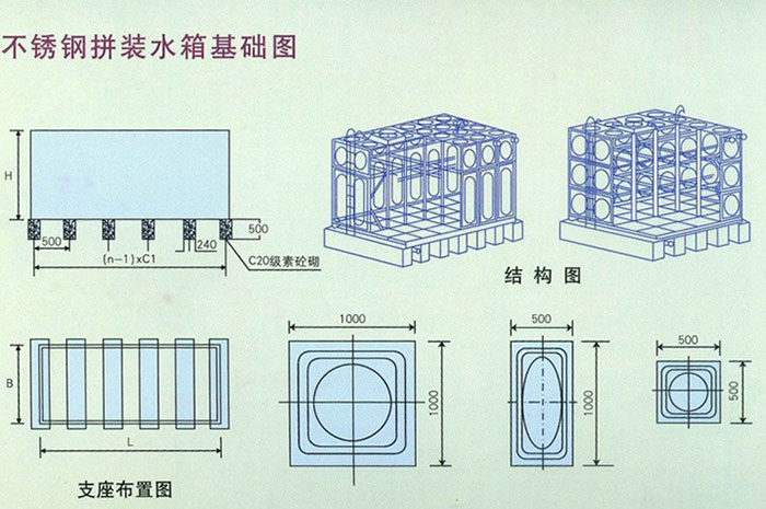2、不銹鋼方形保溫水箱按規(guī)范SS177設(shè)計(jì),材質(zhì)為SUS304,耐腐蝕性強(qiáng)、抗震性能好、便于運(yùn)輸、無需大型吊裝設(shè)備.不同容積均可現(xiàn)場組裝。